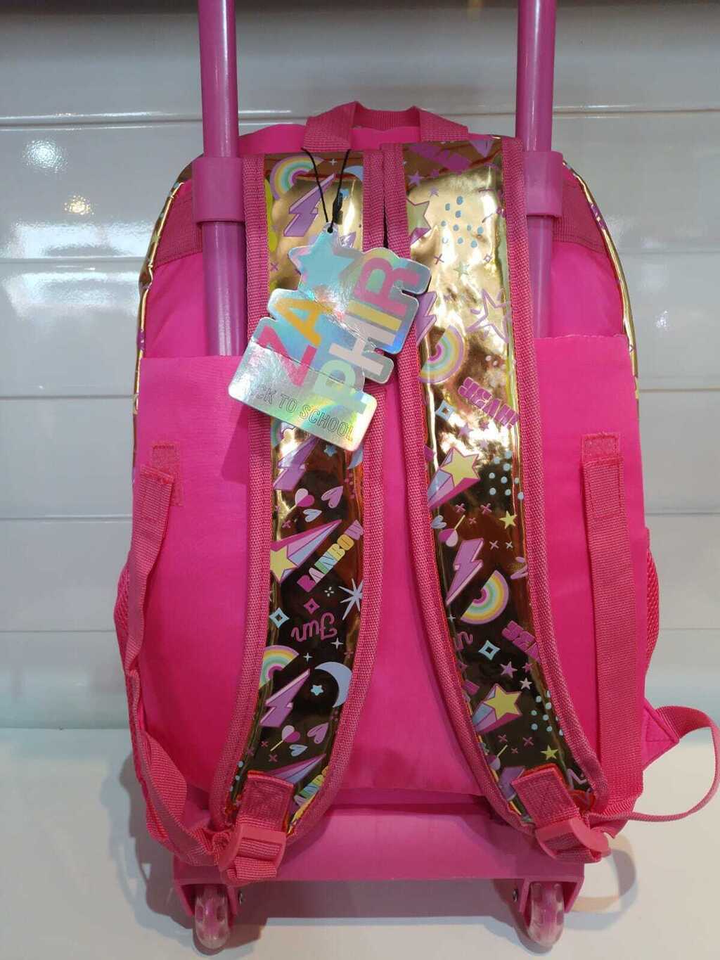 MOCHILA RAINBOW DE 18 PULGADAS CON CARRO. METALIZADA COLOR ORO